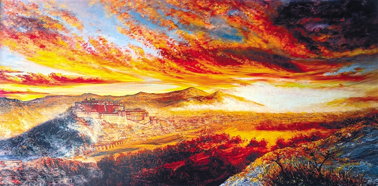 圖為瓷板畫(huà)作品《霞光中的布達(dá)拉宮》。