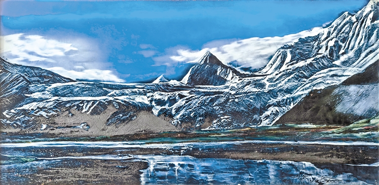 圖為瓷板畫(huà)作品《薩普雪山》。