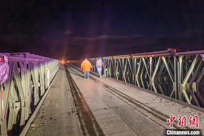 圖為5月12日凌晨地震后,養(yǎng)護(hù)人員對(duì)拉孜雅魯藏布江臨時(shí)保通鋼架橋進(jìn)行檢查。西藏自治區(qū)交通運(yùn)輸廳 供圖