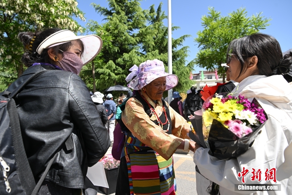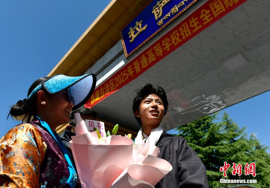 6月9日,西藏拉薩江蘇實(shí)驗(yàn)中學(xué)考點(diǎn)外親友為考生送鮮花。當(dāng)日,西藏自治區(qū)2025年普通高考完成所有科目考試,2025年西藏高考落下帷幕。中新社記者 貢嘎來松 攝