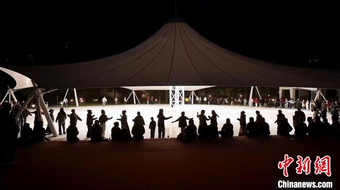 圖為當?shù)孛癖娫谶_孜區(qū)社會主義核心價值觀主題公園跳鍋莊舞。達孜區(qū)委宣傳部供圖