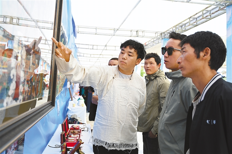 在欣賞視聽盛宴的同時,國家級非遺項目江孜卡墊織造技藝、自治區(qū)級非遺項目牛村陶器制作技藝、市級非遺項目恰哇編織技藝等50個非遺項目,以及民族手工業(yè)產(chǎn)品、南木林縣縣級非遺產(chǎn)品集中展覽展銷,備受消費者青睞。各非遺產(chǎn)品展銷點收入不斷、訂單不斷,經(jīng)初步統(tǒng)計,活動現(xiàn)場非遺產(chǎn)品銷售總額達45萬余元。