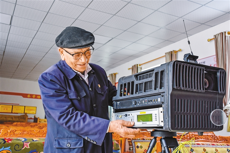 “電影放完了,大家都還舍不得走,有些村民開玩笑,假意不讓我?guī)ё叻庞硻C,請求我放第二場、第三場。他們喜歡看,我也樂意放,多的時候,一天要連續(xù)放四場。其中最受歡迎的就屬《南征北戰(zhàn)》《戰(zhàn)上?!愤@類戰(zhàn)斗片、抗戰(zhàn)片了?!闭f話間,仁真平措黝黑的臉頰紅暈泛開來,笑容里滿是對往昔的回憶。