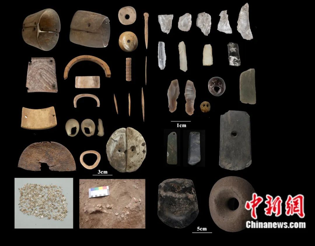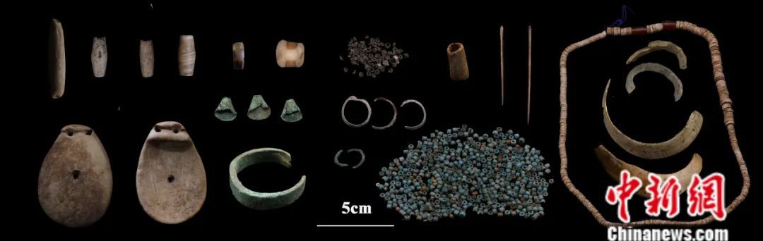 瑪不錯遺址第二期遺物(石質、骨質、金屬裝飾品,骨針、滑石珠、紅玉髓、玻璃珠等)。受訪者供圖