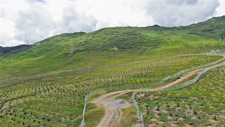“歡迎來到南北山綠化工程現(xiàn)場!”指揮部工作人員頓珠迎面走來,熱情洋溢地說。他翻開隨身攜帶的工作日志,密密麻麻的記錄映入眼簾:“截至目前,我們已栽植161萬余株苗木,種植穴和網(wǎng)圍欄等基礎(chǔ)工程全部完工?!表樦闹敢?,銀灰色的網(wǎng)圍欄在晨光中閃爍,如鋼鐵長城般蜿蜒于群山。