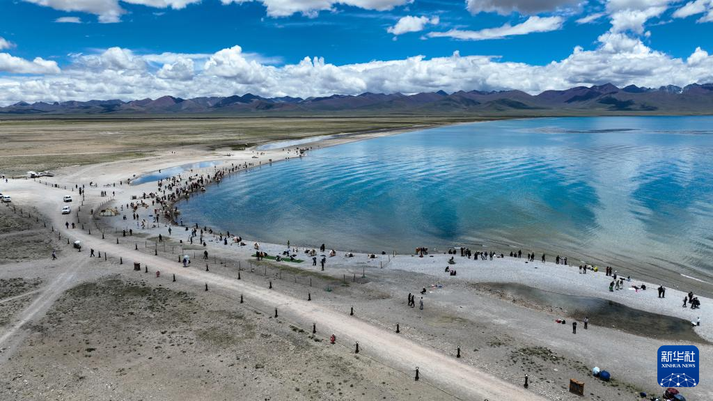 7月16日,在西藏拉薩市當雄縣納木錯扎西島景區(qū),來自世界各地的游客享受著夏日納木錯清爽的風。納木錯湖面海拔4718米,是世界上面積超過1000平方公里的湖泊中海拔最高的湖泊。2024年,納木錯扎西島景區(qū)接待游客約40萬人次。