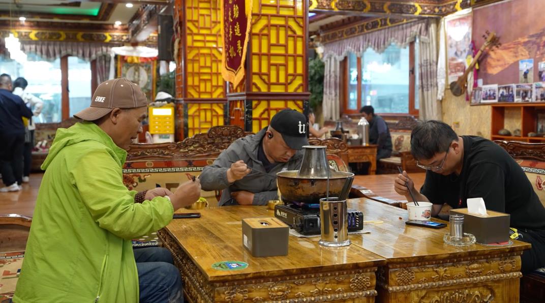 “以前全家靠放牧和種青稞過活,風(fēng)里來雨里去,一年攢不下幾個(gè)錢?,F(xiàn)在開了這家藏式餐館,游客多的時(shí)候一天能接待上百桌,收入很好?!痹谠髯诖褰?jīng)營餐飲的次央說。