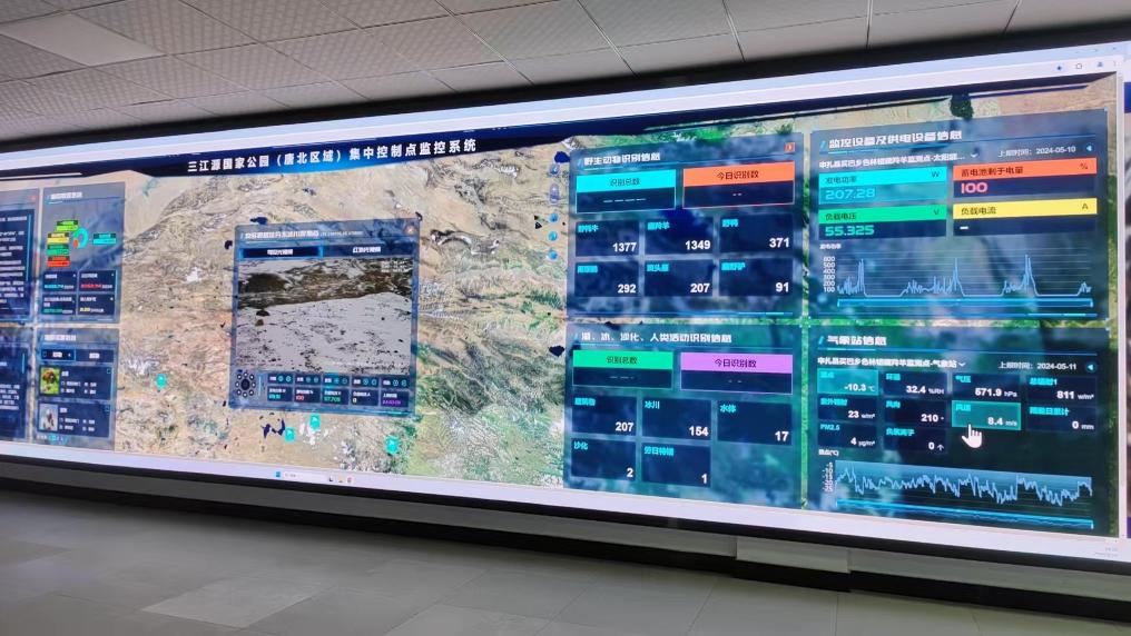 在西藏那曲市三江源國家公園(唐北區(qū)域)監(jiān)測中心,巨大的電子屏幕上交替呈現(xiàn)著無人區(qū)不同角落的生動畫面:藏羚羊群在冰川腳下悠閑覓食;藏野驢在草原上緩步前行;雪豹的身影在某處巖壁間一閃而過。每一幅畫面都配有精準的物種識別數(shù)據(jù)和地理坐標,將生態(tài)狀況轉(zhuǎn)化為清晰可讀的數(shù)字信息。