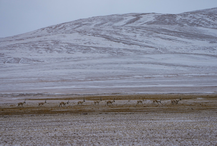 生活在三江源國家公園(唐北區(qū)域)的藏羚羊(2025年2月1日攝)。新華社記者 儲國強 攝