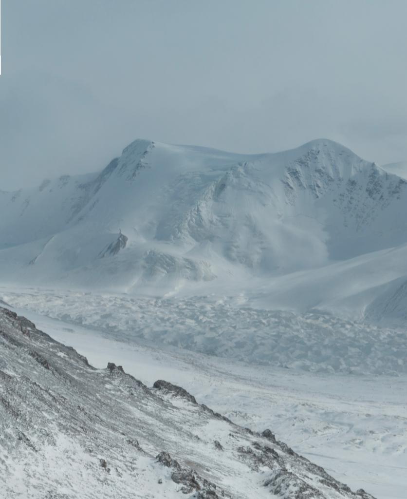 這是2024年2月2日拍攝的格拉丹東峰腳下的姜根迪如冰川。(無人機照片)。新華社記者 晉美多吉 攝