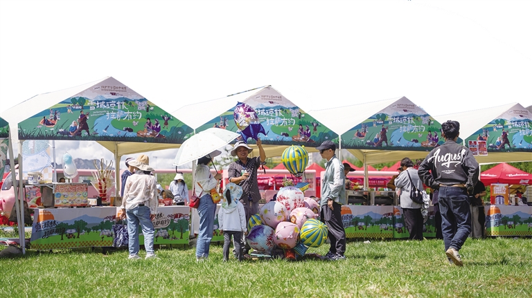 記者看到,綠野市集“沖賽康”充滿(mǎn)了煙火氣,30余家特色攤位齊聚林間。這里不僅有藏式甜茶、糌粑制品等傳統(tǒng)美食,讓游客大飽口福,還有氆氌文創(chuàng)、非遺手作等特色產(chǎn)品,滿(mǎn)足游客的購(gòu)物需求。此外,互動(dòng)游戲與民俗體驗(yàn)也吸引了眾多游客參與,營(yíng)造出充滿(mǎn)活力的林卡生活場(chǎng)景。