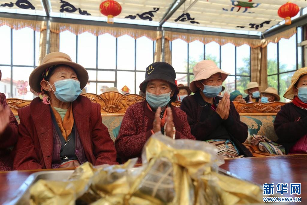 在西藏山南市乃東區(qū)特困人員集中供養(yǎng)服務(wù)中心,老人們收到了粽子和節(jié)日的問(wèn)候(2021年6月14日攝)。新華社記者 張兆基 攝