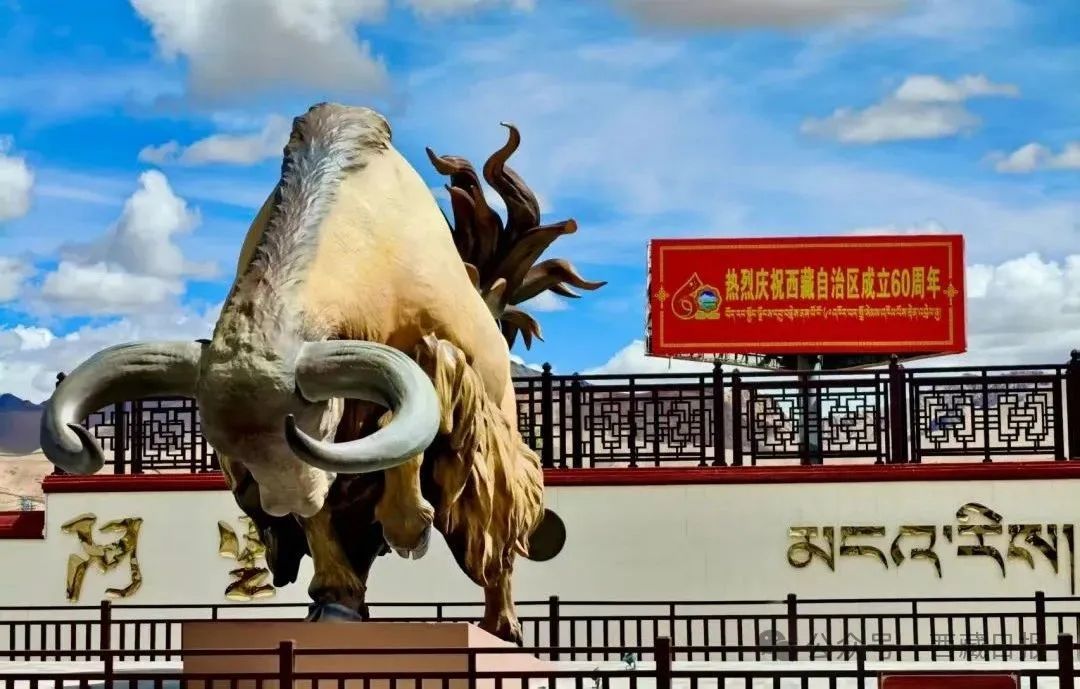 圖為阿里地區(qū)為獻(xiàn)禮西藏自治區(qū)成立60周年建成的金絲野牦牛雕像。記者 洛桑旦增 達(dá)珍 永青 攝