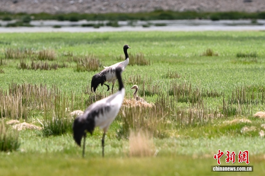 在海拔4700米的西藏自治區(qū)那曲市申扎縣濕地里,黑頸鶴一家在悠閑覓食。黑頸鶴是中國(guó)國(guó)家一級(jí)重點(diǎn)保護(hù)野生動(dòng)物,屬高原特有鶴類,主要棲息于海拔2500米至5000米的高原沼澤地、湖泊及河灘等濕地環(huán)境。每年四月起,成對(duì)的黑頸鶴陸續(xù)飛抵西藏自治區(qū)那曲市申扎縣,在此繁育后代。中新社記者 貢嘎來(lái)松 攝