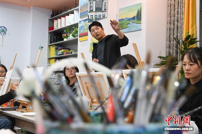 9月1日,2025年西藏自治區(qū)拉薩市第二期“青年夜?!闭介_班。圖為夜校學(xué)員在上美術(shù)課。中新社記者 貢嘎來松 攝