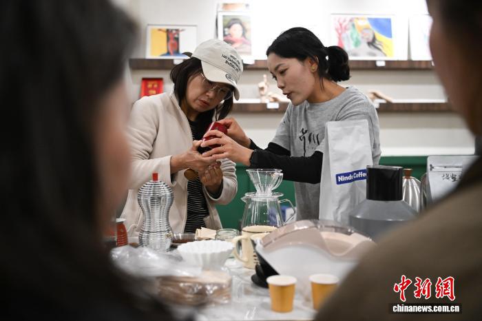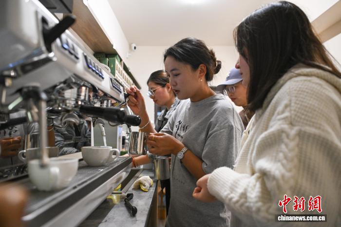 9月1日,2025年西藏自治區(qū)拉薩市第二期“青年夜?!闭介_班。圖為夜校學(xué)員在上咖啡制作課。中新社記者 貢嘎來松 攝