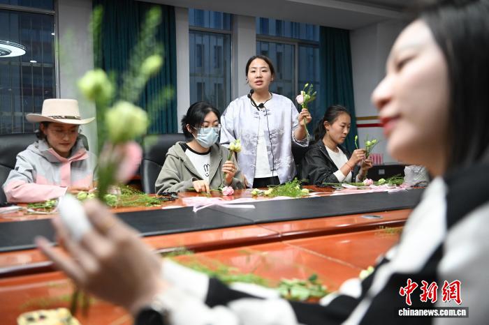 9月1日,2025年西藏自治區(qū)拉薩市第二期“青年夜?!闭介_班。圖為夜校學(xué)員在上花藝課。中新社記者 貢嘎來松 攝