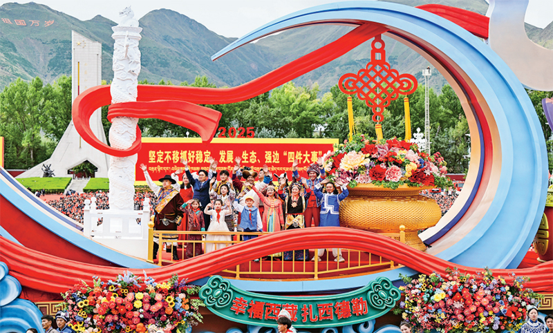 2025年8月21日上午,西藏各族各界干部群眾約2萬(wàn)人歡聚拉薩市布達(dá)拉宮廣場(chǎng),熱烈慶祝西藏自治區(qū)成立60周年。圖為游行的彩車通過(guò)布達(dá)拉宮廣場(chǎng)。 新華社記者 謝環(huán)馳/攝