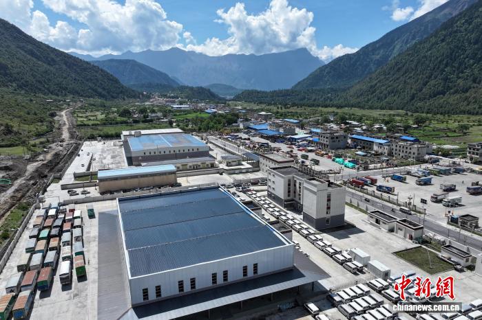 2025年5月25日,隨著邊境貿(mào)易的發(fā)展,西藏吉隆溝達曼村附近的物流園區(qū)已具規(guī)模。(無人機畫面)貢嘎來松 攝