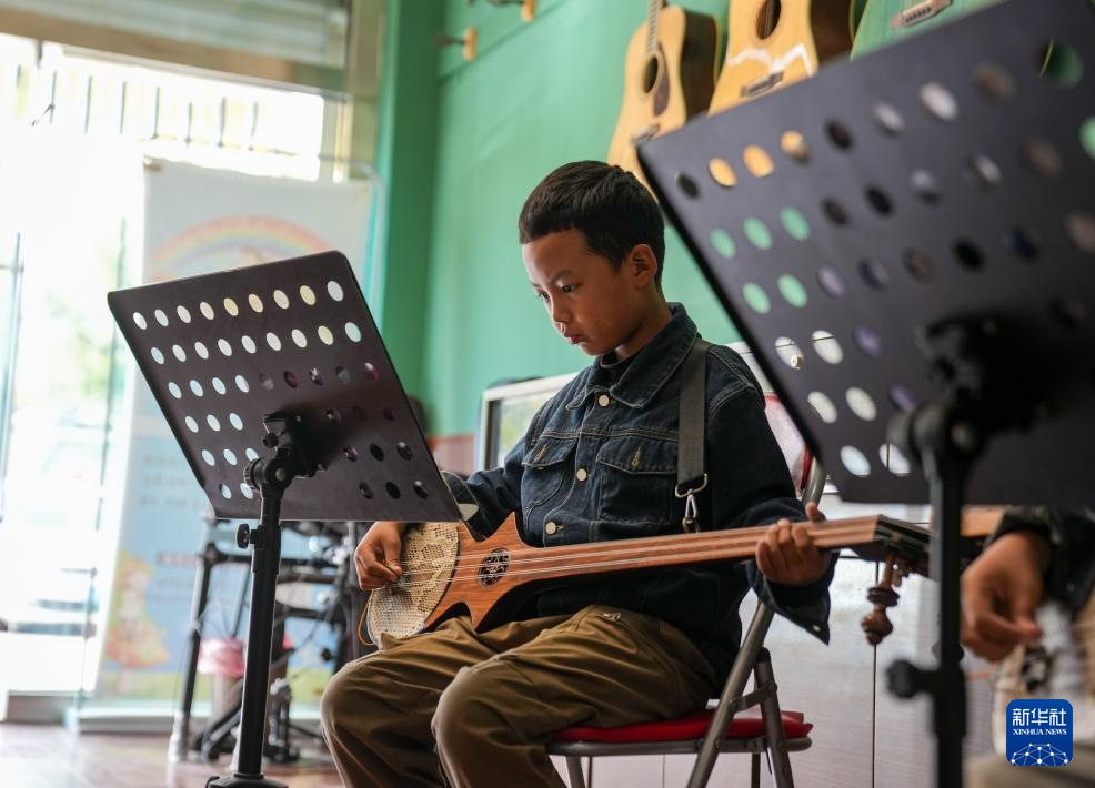 9月13日,在拉薩市古樂(lè)扎念琴行,孩子們?cè)趶椬嘣钋佟P氯A社記者 晉美多吉 攝