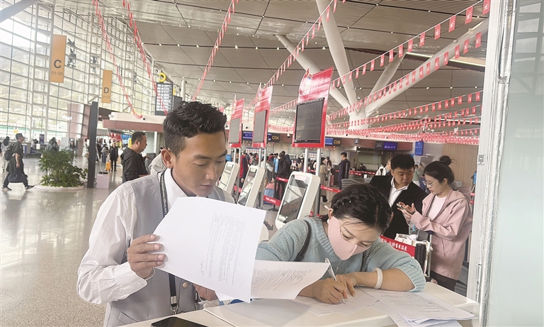 9月14日,萬女士按時抵達拉薩貢嘎國際機場祥鵬航空值機柜臺。地面服務工作人員認真查看了《動物檢疫合格證明》、寵物疫苗注射證明等材料,迅速為萬女士辦理了相關乘機手續(xù)。隨后,工作人員全程提供陪同服務,先與機場安檢部門積極協(xié)調(diào),幫助萬女士和寵物高效通過安檢;接著引領萬女士登機,并與航班客艙經(jīng)理做好詳細交接。