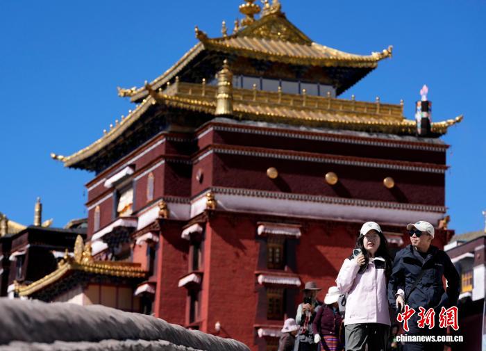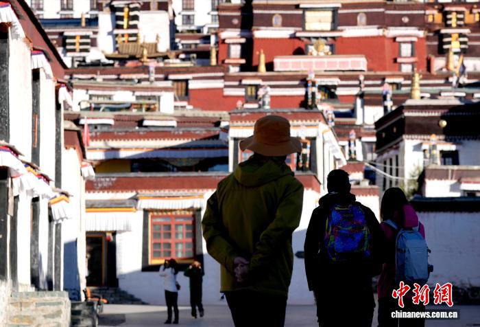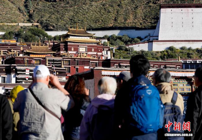 10月7日,游客在西藏日喀則市扎什倫布寺參觀(guān)。扎什倫布寺始建于公元1447年,是中國(guó)國(guó)家5A級(jí)旅游景區(qū)。憑借深厚的歷史底蘊(yùn)和獨(dú)特的文化魅力,吸引眾多中外游客參觀(guān)游覽。中新社記者 李林 攝