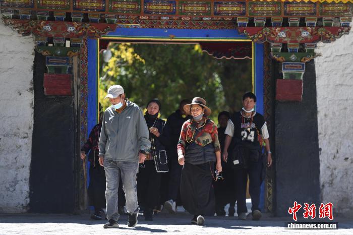 圖為游客在羅布林卡內(nèi)參觀游覽。貢確 攝