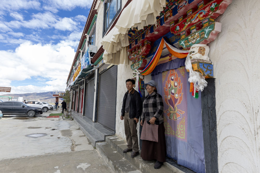 仁青曲珍(右)與兒子在自家門(mén)口(9月16日攝)。新華社記者 姜帆 攝
