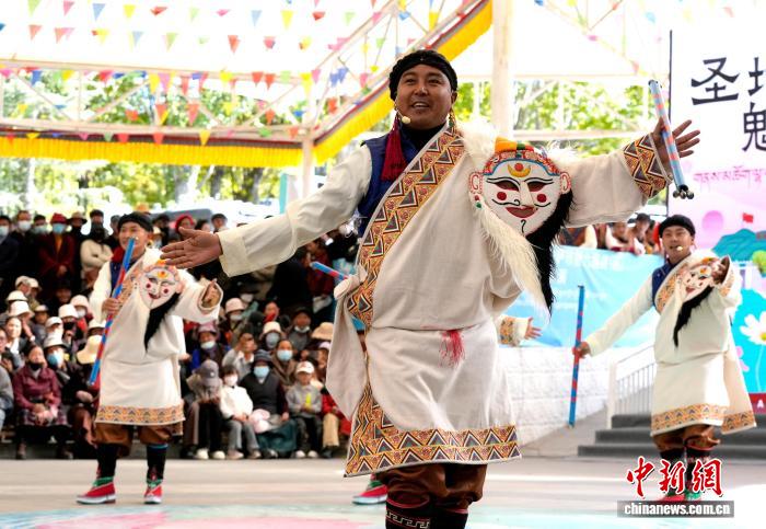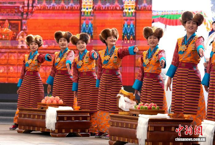 10月19日,“格桑花杯”拉薩市第六屆縣(區(qū))藝術(shù)團文藝調(diào)演頒獎活動在布達拉宮腳下的宗角祿康公園舉行?,F(xiàn)場,拉薩市各縣(區(qū))藝術(shù)團帶來精彩節(jié)目。圖為文藝調(diào)演頒獎活動上的文藝表演。中新社記者 李林 攝