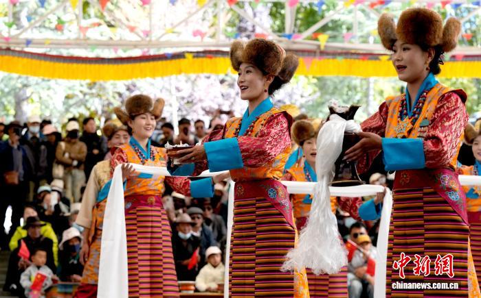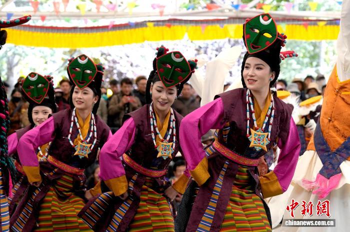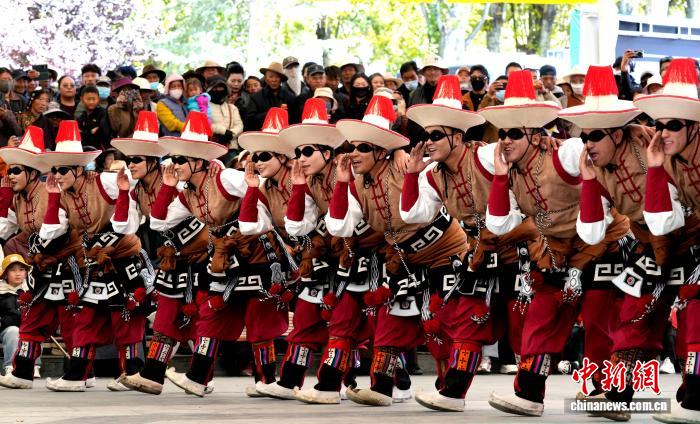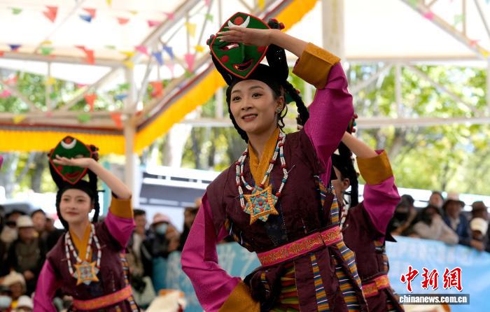 10月19日,“格?;ū崩_市第六屆縣(區(qū))藝術(shù)團文藝調(diào)演頒獎活動在布達拉宮腳下的宗角祿康公園舉行。現(xiàn)場,拉薩市各縣(區(qū))藝術(shù)團帶來精彩節(jié)目。圖為文藝調(diào)演頒獎活動上的文藝表演。中新社記者 李林 攝
