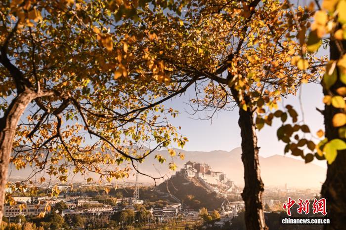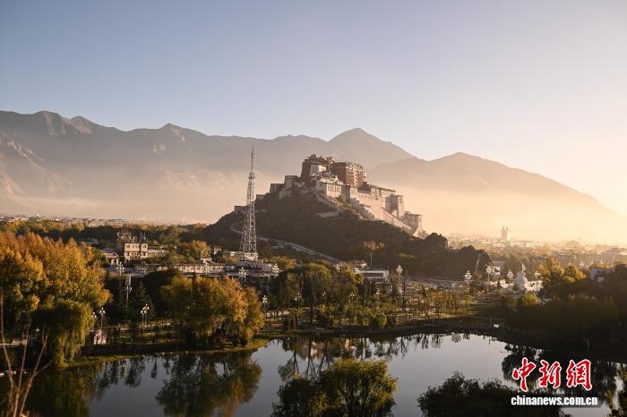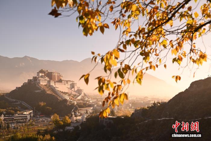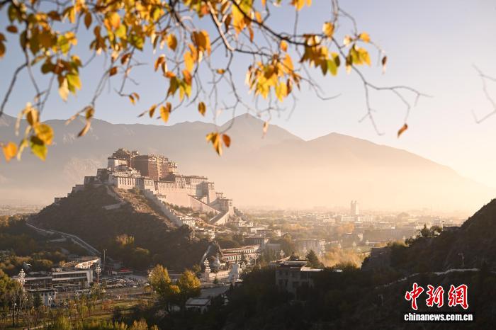 10月22日清晨,薄霧尚未散盡,西藏拉薩團結公園的黃葉與布達拉宮相映成趣,勾勒出高原秋日的獨特畫卷。中新社記者 貢嘎來松 攝