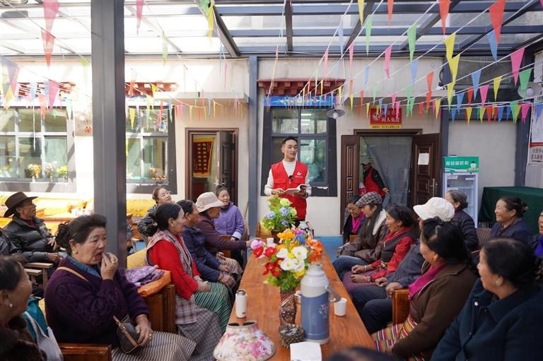 這樣熱鬧的學(xué)習(xí)場(chǎng)景,源于一份精準(zhǔn)適配的“老年興趣菜單”,策門林老年日間照料中心每日開設(shè)兩節(jié)知識(shí)普及與技能培訓(xùn)課,內(nèi)容涵蓋文學(xué)閱讀、藏文教學(xué)等知識(shí)類課程,瑜伽、民歌、朗瑪堆諧等文體課程,還有安全知識(shí)科普等實(shí)用內(nèi)容,從“滋養(yǎng)精神”到“強(qiáng)健身體”,全方位覆蓋老人需求。