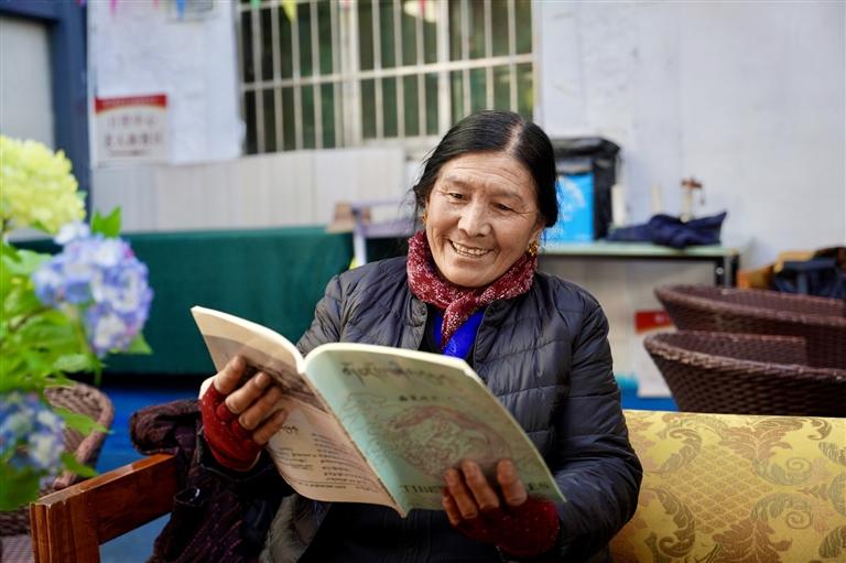62歲的巴桑卓瑪也在課堂里找回了新的生活樂趣。“以前我不識(shí)字,來這兒一年多,不僅學(xué)會(huì)了讀和寫,還學(xué)到了很多新知識(shí)?!卑蜕W楷斦f,“現(xiàn)在生活好了,就想多學(xué)些新東西,每天都盼著來教室,根本不想待在家里。當(dāng)初也是聽大家都說這里好,我才來的,現(xiàn)在覺得來對(duì)了!”