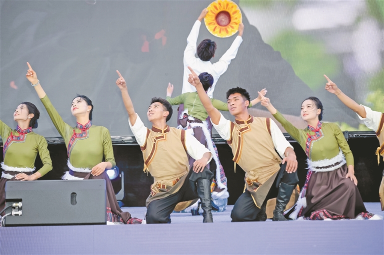 圖為松贊藝術團帶來的舞蹈節(jié)目《向陽花開》。