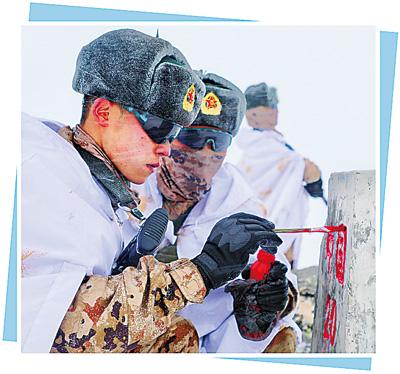 天色漸暗,山頂氣溫驟降,寒風(fēng)呼嘯。官兵們臉上沒有一絲畏懼,年輕的面龐更加堅毅,互相鼓勵的聲音在隊伍中回蕩,“界碑不遠了,再加把勁!”
