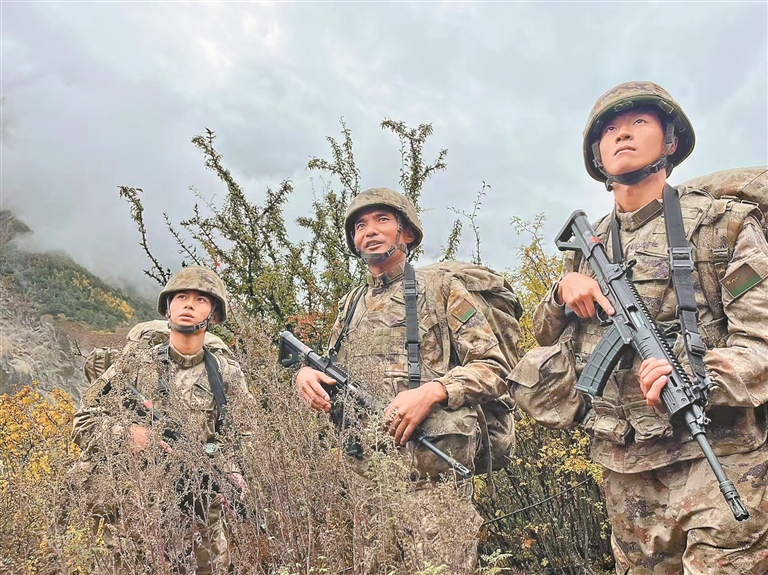 今年7月,連隊(duì)又一次前往阿相比拉,當(dāng)時(shí)雪雨交加,道路異常艱險(xiǎn)。次羅布帶領(lǐng)偵察班打頭陣:“‘鷹嘴崖’傾角70多度,容易落冰錐,需拉大間距觀察通過;‘沼澤地’東側(cè)30米有硬土層,可繞行……”憑借對(duì)防區(qū)的爛熟于心,他一次次帶領(lǐng)隊(duì)伍避過危險(xiǎn)路段,成為連隊(duì)公認(rèn)的防區(qū)“活地圖”。