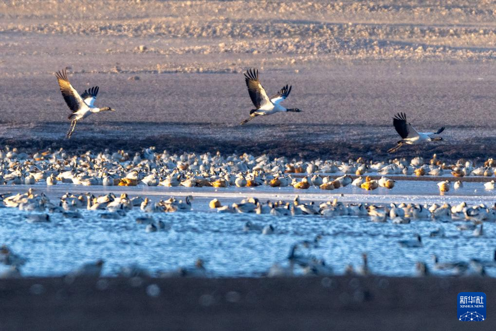 冬日時(shí)節(jié),拉薩市林周縣迎來(lái)大批越冬候鳥,黑頸鶴、斑頭雁、赤麻鴨等候鳥在河谷、湖泊等地覓食、休憩。