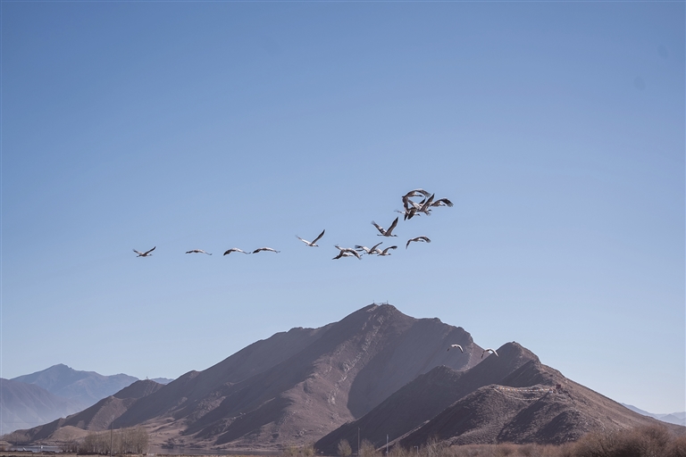 寒冬到來(lái),雅江中游河谷黑頸鶴國(guó)家級(jí)自然保護(hù)區(qū)林周澎波區(qū)域迎來(lái)大批越冬黑頸鶴。作為國(guó)家一級(jí)保護(hù)動(dòng)物、高原特有珍稀物種——黑頸鶴,2025年6月被正式評(píng)為拉薩市鳥,成為城市生態(tài)文化名片。它們?cè)诖笋v足棲息、覓食嬉戲,勾勒出一幅人與生靈和諧共生的美好圖景。林周縣以制度護(hù)航、全民參與、科學(xué)管護(hù)等方式筑牢保護(hù)屏障,讓“高原仙子”安穩(wěn)越冬,用種群遞增印證高原生態(tài)保護(hù)實(shí)效。