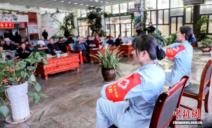 圖為醫(yī)護(hù)人員為特困人員集中供養(yǎng)中心的老人們傳授健康操。彭毅 供圖