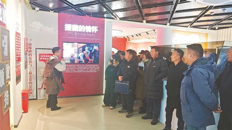 圖為那曲市干部職工在工作人員引導(dǎo)下有序參觀那曲健康教育科普基地。記者 汪純 攝