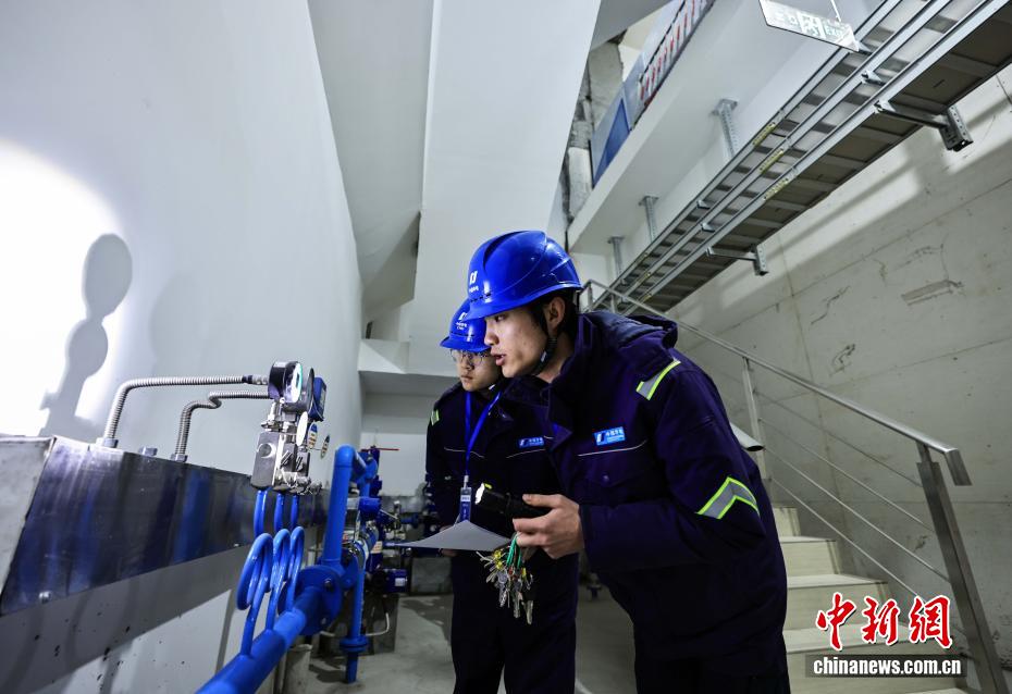 12月27日,中國在建海拔最高雙曲拱壩電站——葉巴灘水電站首批機組正式投產(chǎn)發(fā)電。葉巴灘水電站位于四川省甘孜州白玉縣與西藏自治區(qū)貢覺縣交界的金沙江干流上。水電站總裝機容量224萬千瓦,此次首批投產(chǎn)發(fā)電的機組為4號和3號機組。圖為12月25日,巡檢員在機組運行現(xiàn)場巡查。中新社記者 王磊 攝