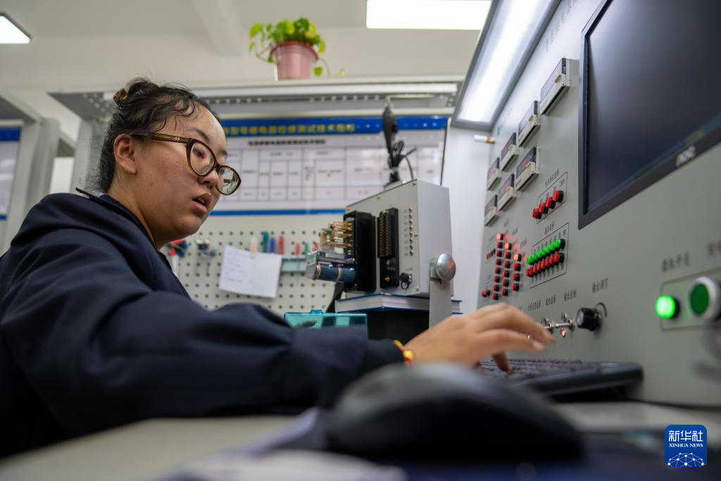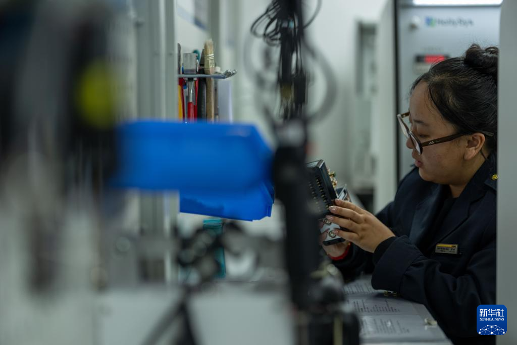 1月6日,拉薩基礎(chǔ)設(shè)施段電務(wù)專修車間繼電器檢修工區(qū)的信號工路東燕在調(diào)試檢測臺。新華社記者 旦增尼瑪曲珠 攝