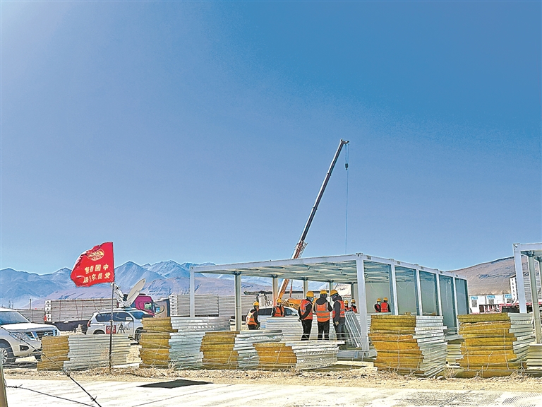 圖為2025年1月10日,定日縣受災(zāi)最嚴重的長所鄉(xiāng)多個安置點正在組織力量快速搭建活動板房。記者 次旦央吉 攝