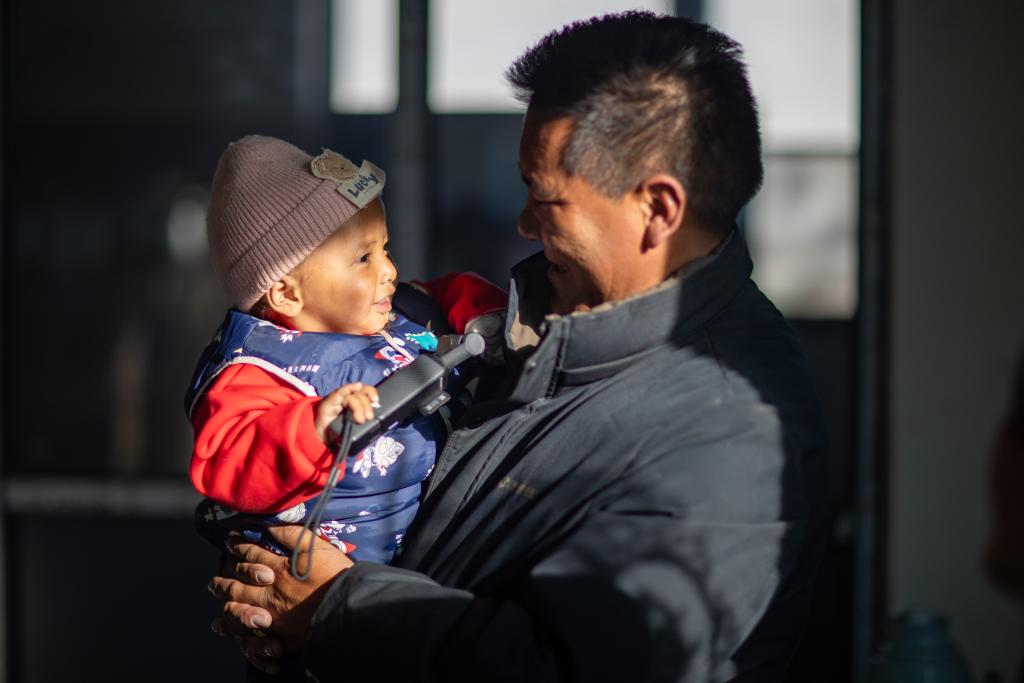2026年1月5日,在西藏定日縣長(zhǎng)所鄉(xiāng)雜村,長(zhǎng)所鄉(xiāng)鄉(xiāng)黨委書記次仁旺堆(右)在次仁拉巴家中逗弄他。地震后在臨時(shí)板房居住期間,他曾當(dāng)過(guò)寶寶的臨時(shí)保姆。新華社記者 姜帆 攝