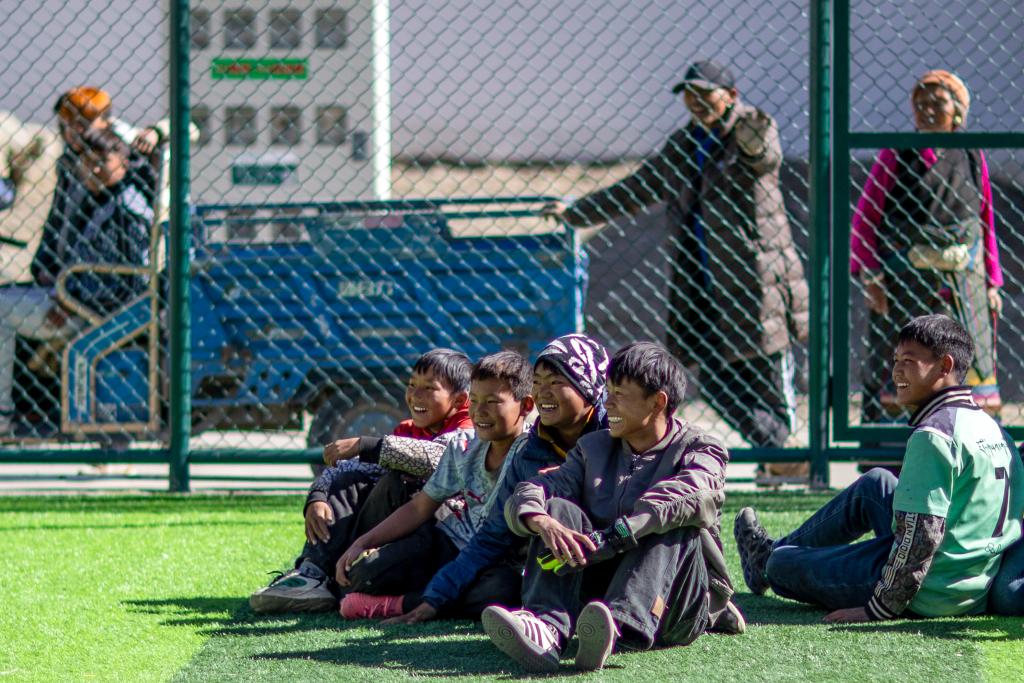 2026年1月5日,在森嘎村的足球場(chǎng)上,少年在觀看伙伴們踢球。新華社記者 姜帆 攝