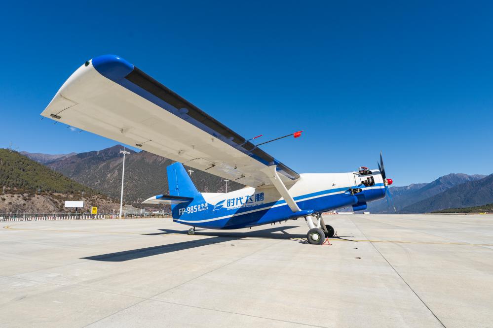 執(zhí)行川藏高原跨區(qū)域無人機(jī)物流航線首飛的FP-985“金牛座”大型固定翼無人機(jī)。(新華社發(fā))