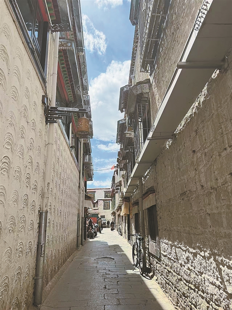 在文體表達(dá)上,該書以紀(jì)實(shí)散文的形式,將八廓街的歷史、文化與當(dāng)代生活娓娓道來。書中文字優(yōu)美靈動(dòng),編輯手法多元,每一個(gè)篇章都宛如一扇被輕輕推開的老舊木門,既有樸實(shí)無華卻催人淚下的日常故事,也有瑰麗奇特如古老傳說的文化敘事。如書中對(duì)瑪吉阿米黃房子“滿地落葉映秋光”的細(xì)膩描摹,對(duì)邦達(dá)倉“紅墻白雪黑窗”的詩意刻畫,都融入了作者獨(dú)特的文化視角,文字韻律動(dòng)人,極具吸引力與感染力。