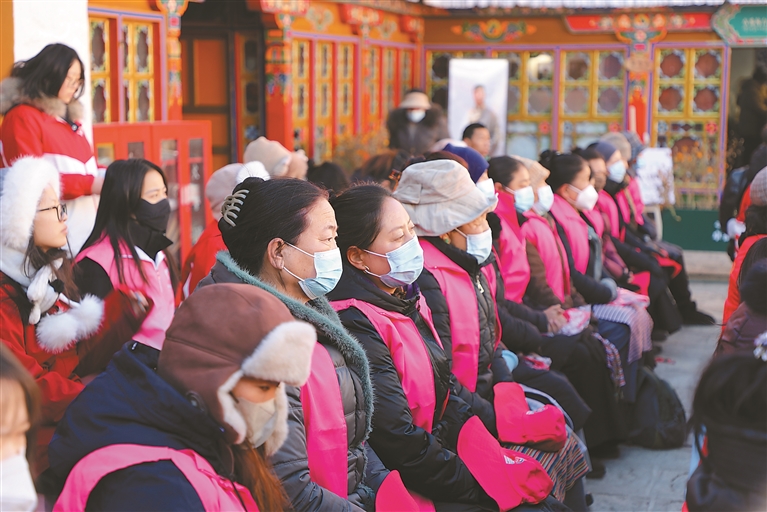 圖為拉薩市婦聯(lián)志愿者參加城鄉(xiāng)環(huán)境綜合大整治行動動員會。