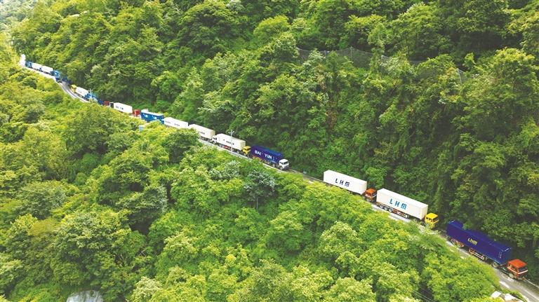 滿載出口貨物的車輛有序候檢。通訊員 蔣美靈 攝
