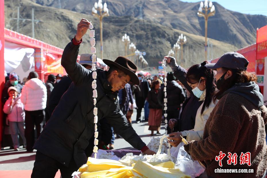 2月2日,西藏自治區(qū)山南市瓊結(jié)縣2026年“幸福瓊結(jié)·優(yōu)享年貨”促消費暨展銷活動在朗熱大道啟幕,為春節(jié)、藏歷新年預(yù)熱添彩。本次活動由瓊結(jié)縣投入200萬元人民幣打造,為期7天,吸引103家商戶入駐,其中73家為本地商戶,帶來150余種特色商品,高原農(nóng)產(chǎn)、藏式手工藝品、傳統(tǒng)年貨齊聚現(xiàn)場,盡顯藏地年味?;顒油瞥鲛r(nóng)業(yè)銀行掌銀立減優(yōu)惠,民眾無需領(lǐng)券即可享實惠,現(xiàn)場還設(shè)置咨詢臺與宣傳點,切實保障消費安全。圖為民眾在選購奶渣。倫珠澤仁 攝